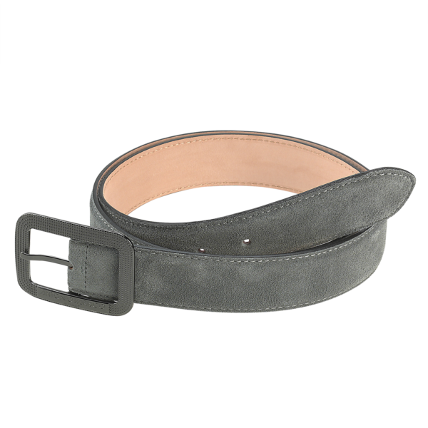 Cintura in pelle scamosciata colore grigio, fodera in pelle